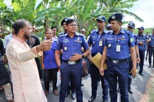 ভোলায় হত্যাকাণ্ডের রহস্য উদঘাটন করার স্বার্থে ঘটনাস্থল সরজমিনে পরিদর্শন করছেন ভোলা জেলা পুলিশ সুপার মোহাম্মদ সাইফুল ইসলাম