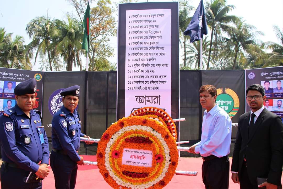 ‘পুলিশ মেমোরিয়াল ডে’ উপলক্ষে জননিরাপত্তা ও আইন-শৃঙ্খলা রক্ষাকালে জীবন উৎসর্গকারী পুলিশ সদস্যদের স্মরণে ভোলা পুলিশ লাইন্স মাঠে নির্মিত অস্থায়ী পুলিশ স্মৃতিস্তম্ভে ভোলা জেলা পুলিশের পক্ষ থেকে পুলিশ সুপার সাইফুল ইসলাম পুষ্পস্তবক অর্পণ করে শহীদ পুলিশ সদস্যদের প্রতি গভীর শ্রদ্ধা নিবেদন ও সন্মান প্রদর্শণ করেন।