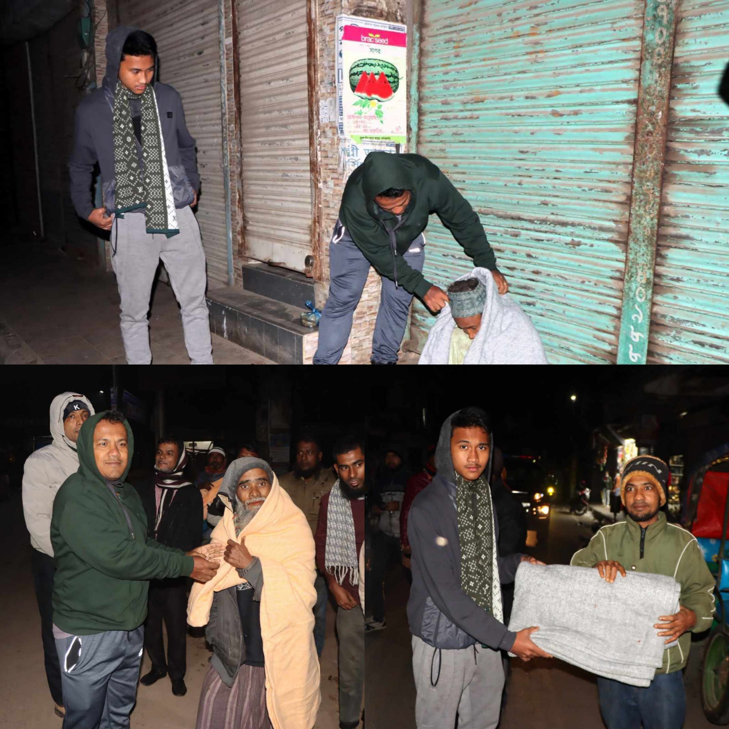 ১১ জানুয়ারি বৃহস্পতিবার রাত ১ টার দিকে রাতের আঁধারে জেলা শহরের বিভিন্ন এলাকায় রাস্তায় ঘুরে ঘুরে শীতার্তদের মাঝে কম্বল বিতরণ করেন তিনি।