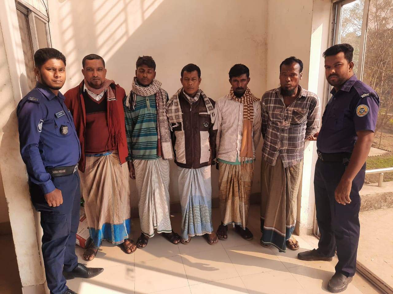 আটককৃতরা হলেন, মজির উদ্দিন (২৭), আবু মিয়া (৪৫ ), শেখ ফরিদ (৩৫), হারুন মাতাব্বর (৩৫), জাহাঙ্গীর (৫০)।