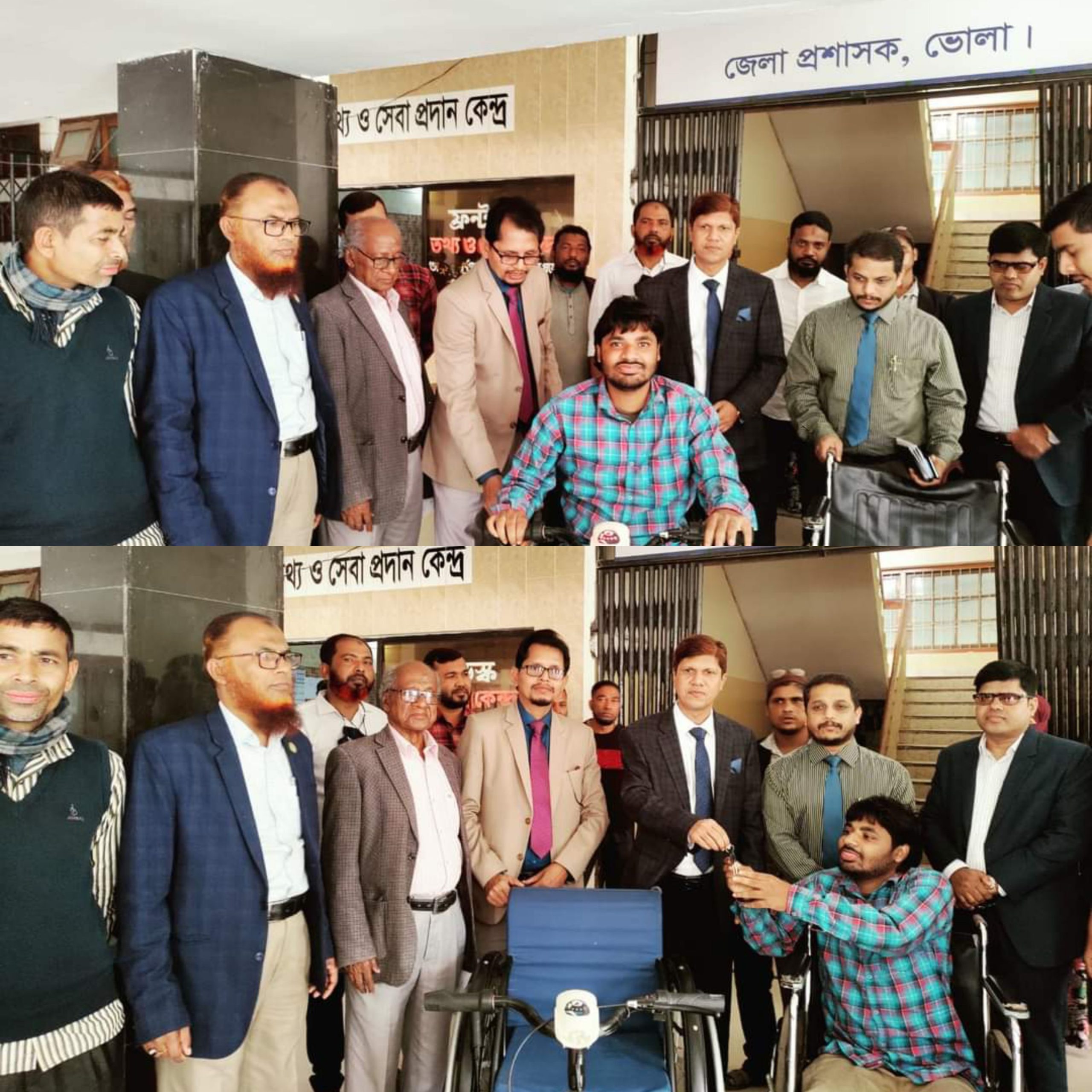 জেলা প্রশাসনের ও সমাজ কল্যান পরিষদের উদ্যোগে কলেজ শিক্ষার্থীকে হুইলচেয়ার প্রদান।