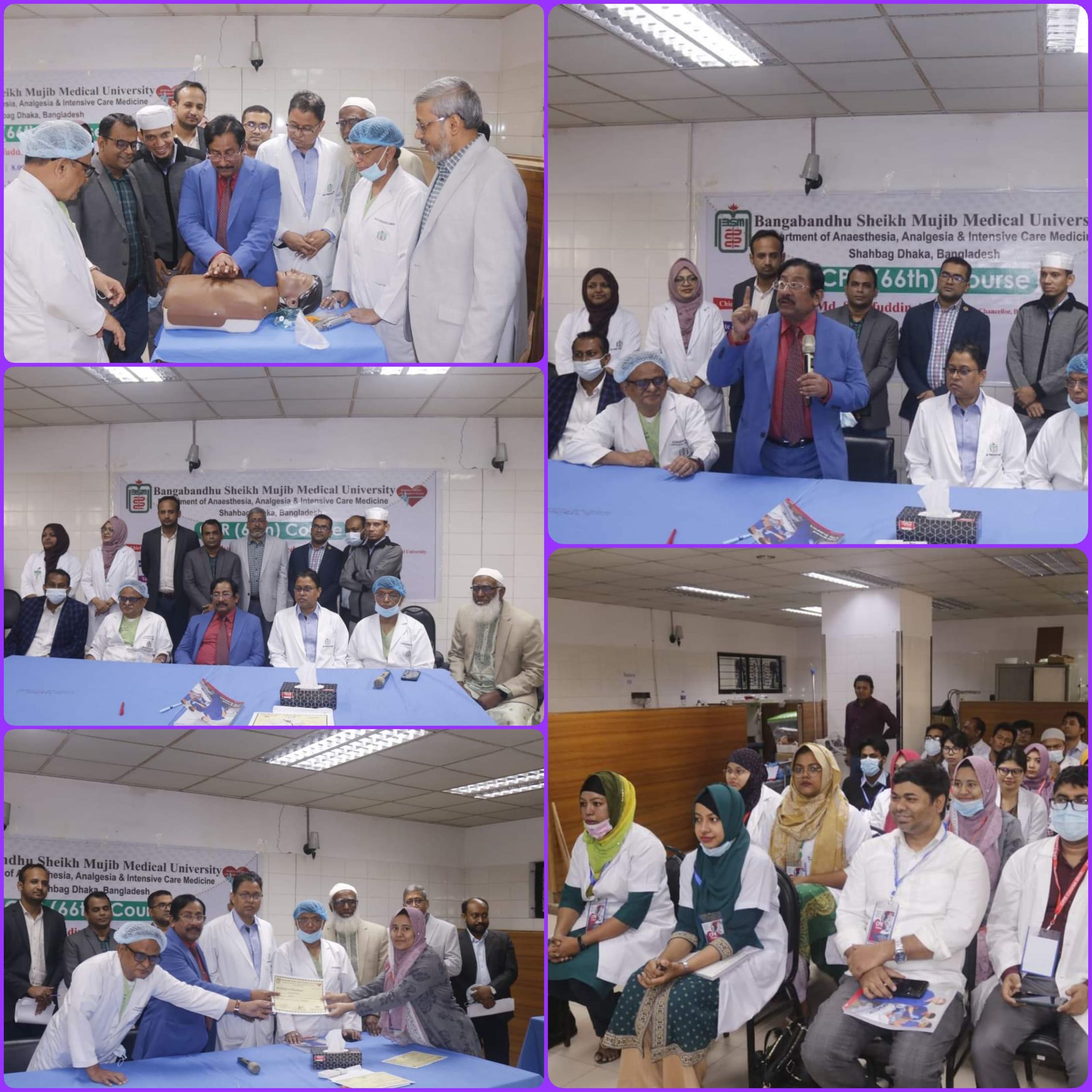 বঙ্গবন্ধু শেখ মুজিব মেডিক্যাল বিশ্ববিদ্যালয়ে (বিএসএমএমইউ) ' কার্ডিওপালমোনারী রিসাসিটেশন প্রোনাউনসিয়েশন (সিআরপি) শীর্ষক ৬৬ তম ব্যাচের প্রশিক্ষণ কর্মশালা অনুষ্ঠিত হয়েছে। বুধবার সকাল ৯টায় (২১ ডিসেম্বর) বিশ্ববিদ্যালয়ের কেবিন ব্লকের স্কিল ল্যাবে এ প্রশিক্ষণ কর্মশালার আয়োজন করে এনেস্থিসিয়া বিভাগ। প্রশিক্ষণ কর্মশালা শেষে প্রশিক্ষাণার্থীদের মাঝে প্রধান অতিথি হিসেবে বঙ্গবন্ধু শেখ মুজিব মেডিক্যাল বিশ্ববিদ্যালয়ের মাননীয় উপাচার্য অধ্যাপক ডা. মোঃ শারফুদ্দিন আহমেদ সনদপত্র তুলে দেন।