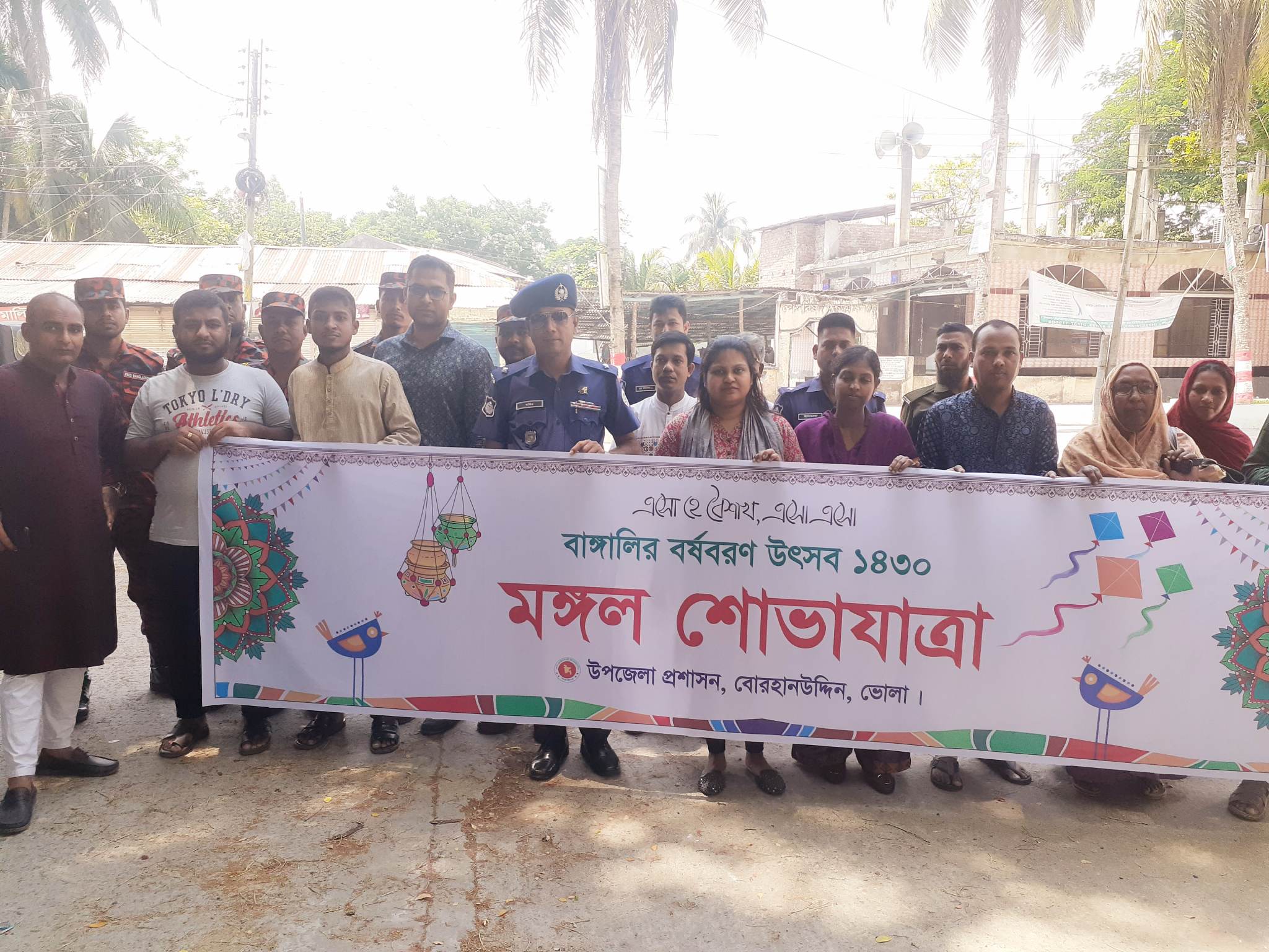 বোরহানউদ্দিনে বাংলা নববর্ষ ১৪৩০ উদযাপন উপলক্ষে বর্ণাঢ্য মঙ্গল শোভাযাত্রা অনুষ্ঠিত