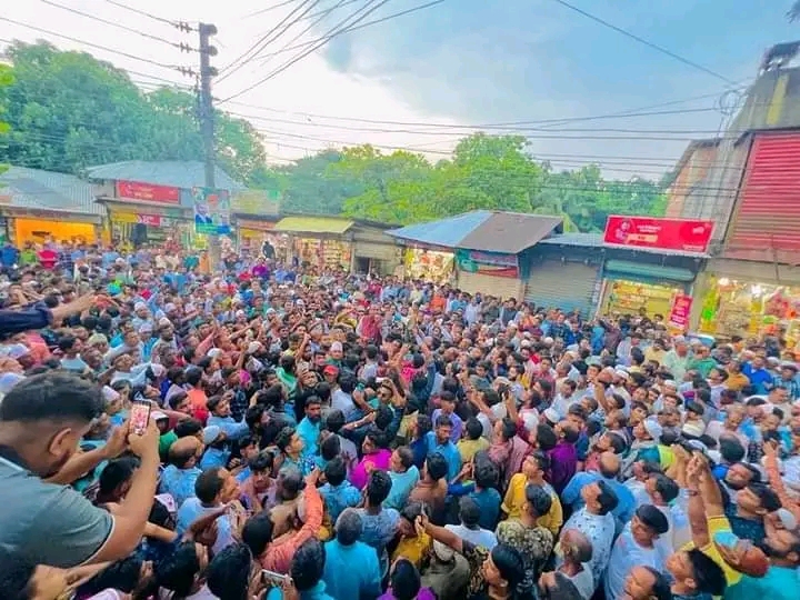 অনুষ্ঠানে হাজার হাজার মানুষের ঢলে জন সমুদ্রে পরিনত হয়েছে পৌর এলাকা।