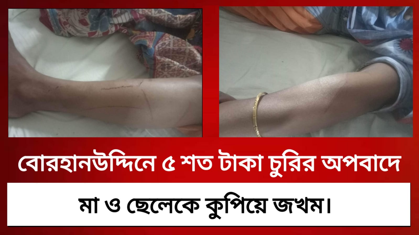 বোরহানউদ্দিনে ৫০০ টাকা চুরির অপবাদে মা ও ছেলেকে কুপিয়ে জখম।