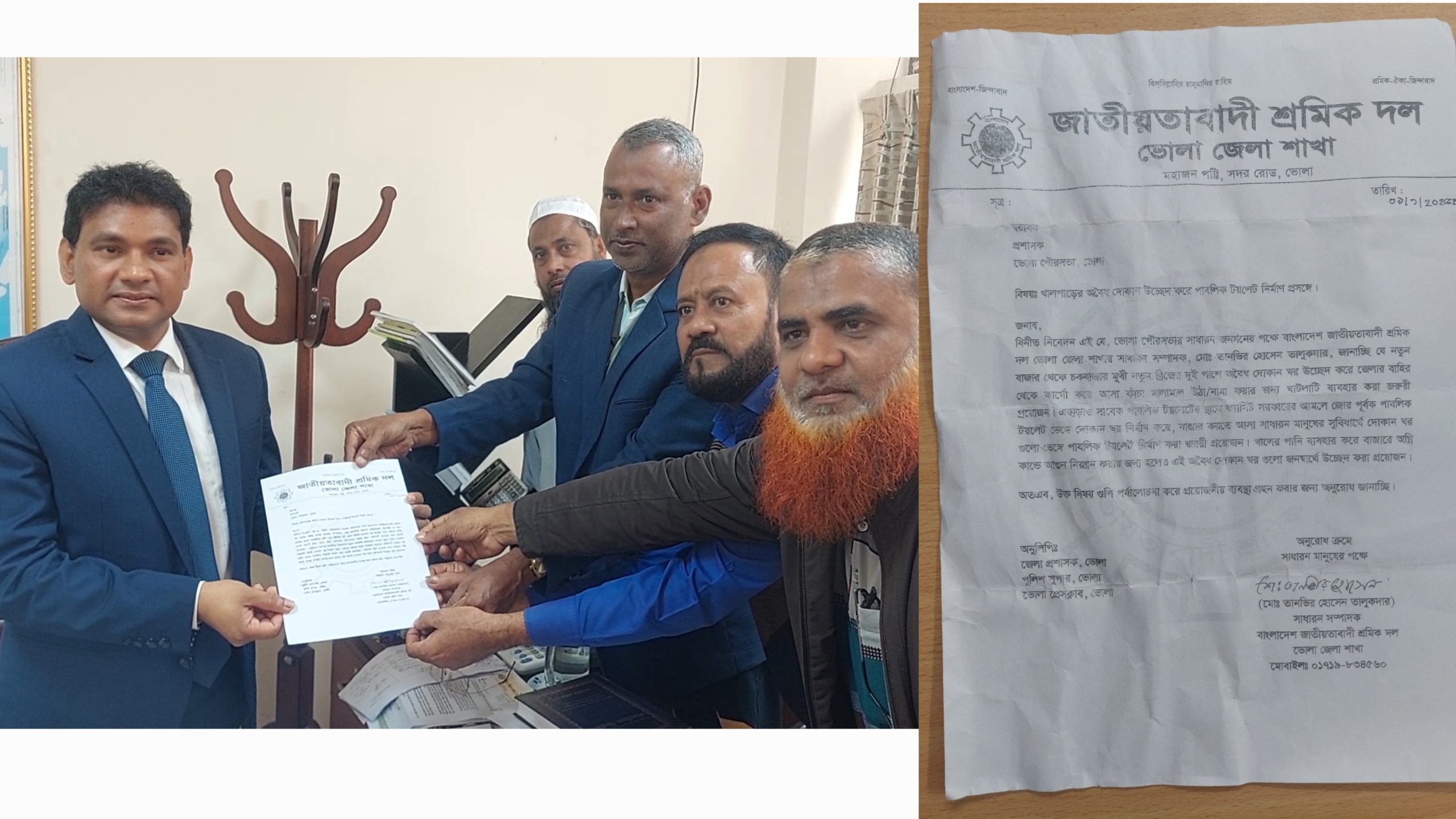 ভোলায় অবৈধ দোকান উচ্ছেদ করে পাবলিক টয়লেট ও ঘাটলা নির্মাণ জন্য স্মারক লিপি প্রদান