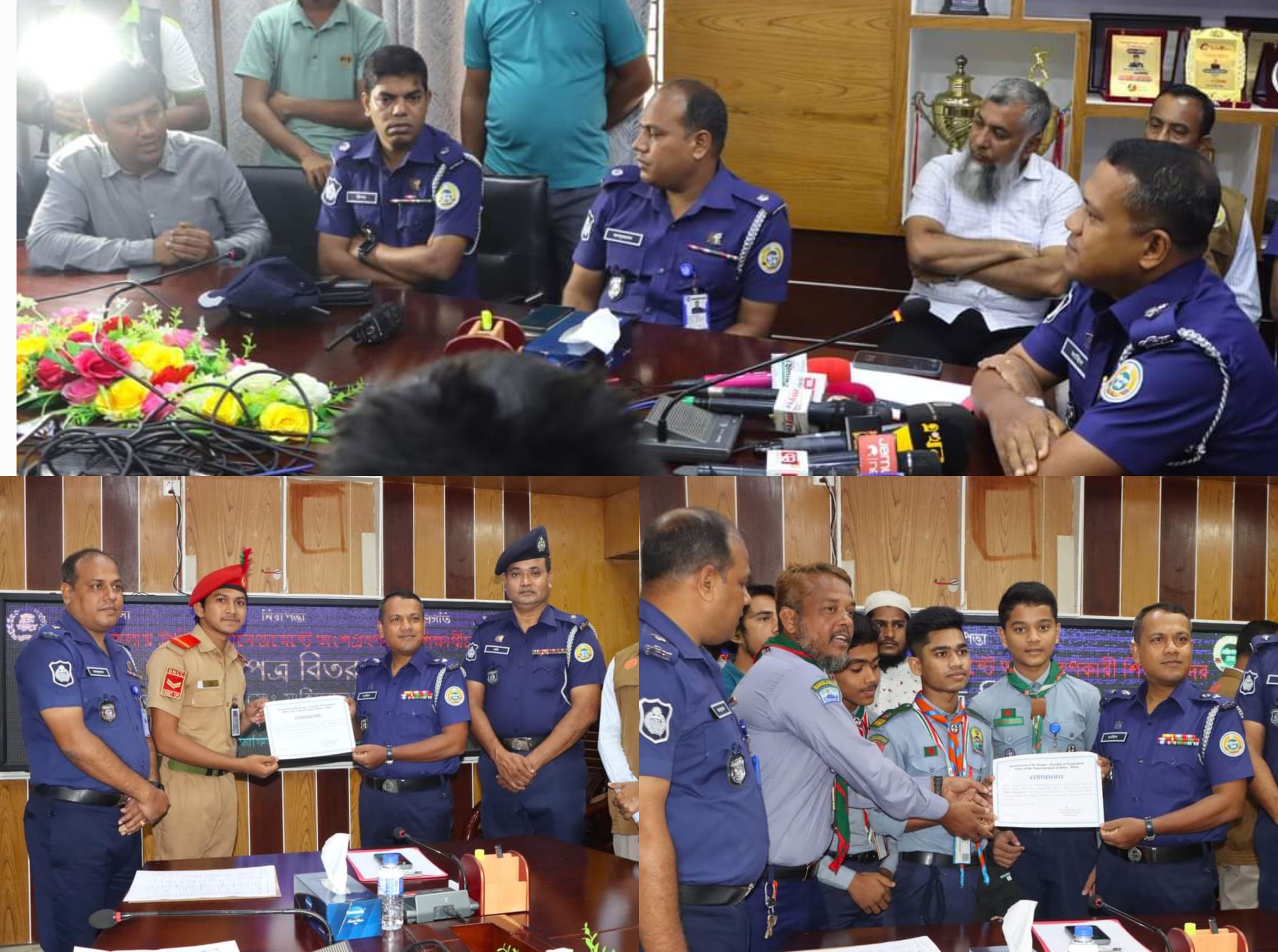 ভোলায় ট্রাফিকের দায়িত্ব পালনকারী শিক্ষার্থীদের সনদপত্র বিতরণ।