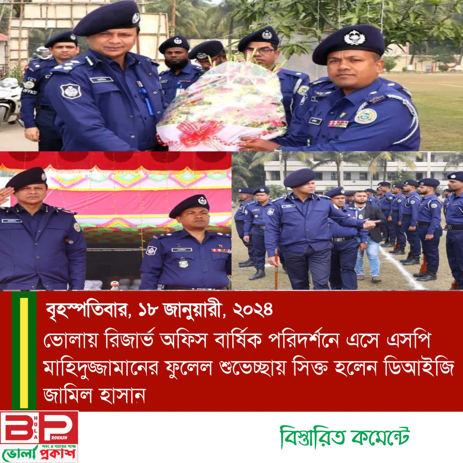 ভোলায় রিজার্ভ অফিস বার্ষিক পরিদর্শনে এসে এসপি মাহিদুজ্জামানের ফুলেল শুভেচ্ছায় সিক্ত হলেন ডিআইজি জামিল হাসান