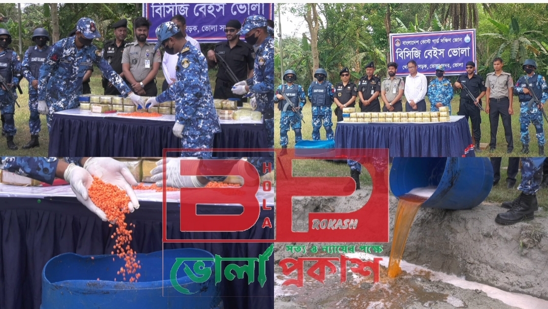 ভোলায় কোস্টগার্ড ও র্যাবের যৌথ অভিযানে উদ্ধার হওয়া ২ লক্ষ ৯৯ হাজার ৯৮০ পিচ ইয়াবা ধ্বংস করা হয়েছে। যাঁর আনুমানিক বাজার মূল্য প্রায় ৯ কোটি টাকা।
