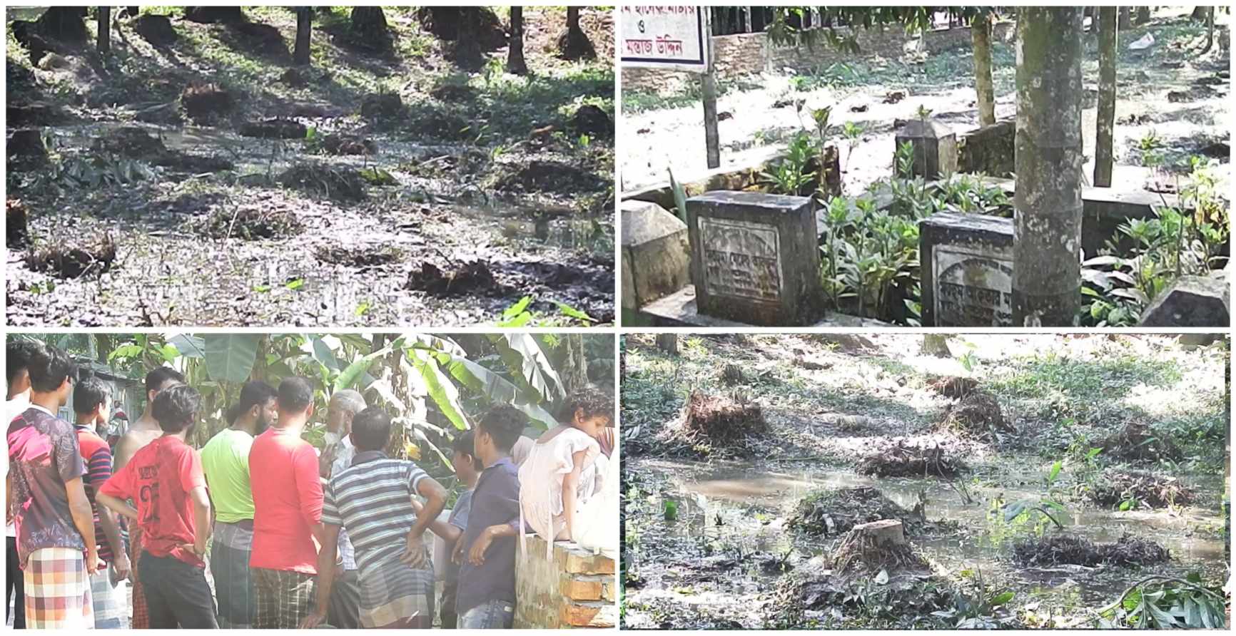 জমির মালিক নুরুন্নাহার লিখিত অভিযোগে জানায়, তার বাবা আক্তার মাহমুদ ৬৪ বছর আগে এই জমিতে তালগাছ নারিকেল গাছ সহ বিভিন্ন প্রজাতের গাছ রোপন করেন। দীর্ঘ বেশ কয়েক বছর আগে আমার পিতা ও মাতার মৃত্যুর পর তাদের দাফন সম্পন্ন করা হয় এই জমিতে। যার বাধাইকৃত কবরস্থান এখনো বিদ্যমান রয়েছে। জমি জবরদখলের চেষ্টায় প্রতিপক্ষের সাদেক মাস্টার ও মন্তাজ উদ্দিনের নামে একটি সাইনবোর্ড স্থাপন করেছে। কিন্তু স্থানীয় লোকজন জানায়, এই সাইনবোর্ডটি জমির পিছনে পুকুর পাড়ে ছিল গাছ কাটার দিন সাইনবোর্ডটি জমিনের সামনে স্থাপন করা হয়েছে।