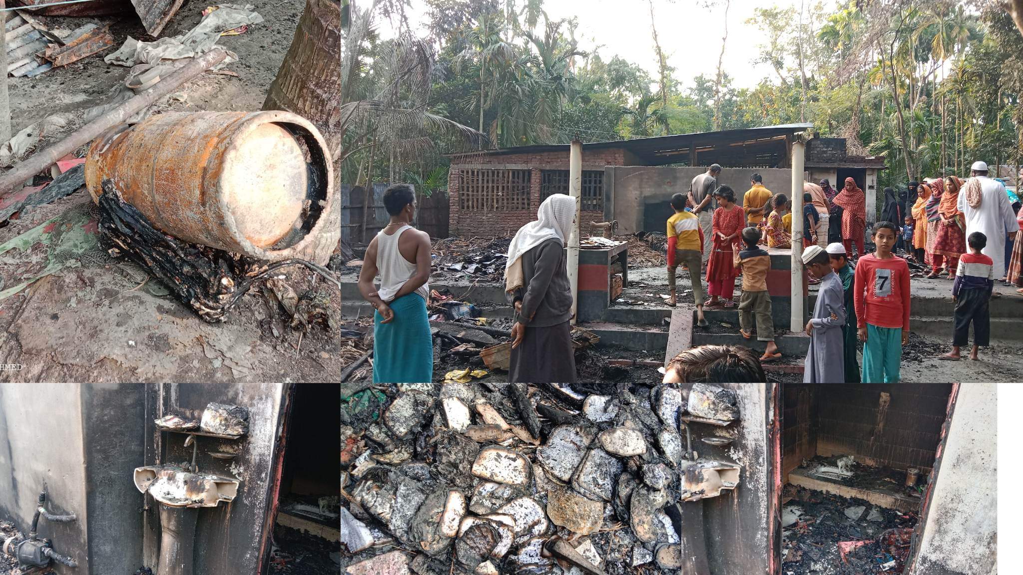 স্থানীয় সূত্রে জানা গেছে, রাতে ওই বাড়ির খামারি নাছির উদ্দীনের পরিবারের লোকজন চুলায় রান্না শেষ করে খাওয়া দাওয়া সেরে ঘুমাতে যান। রাত ২ টার দিকে হঠাৎ ঘুম থেকে জেগে রান্না ঘরে আগুন দেখতে পান তারা। মুহূর্তের মধ্যে আগুন পুরো ঘরে ছড়িয়ে পড়লে তারা ঘর থেকে দ্রুত বের হয়ে চিৎকার দিলে আশপাশের লোকজন ছুটে এসে ফায়ার সার্ভিসকে খবর দেন। পরে ফায়ার সার্ভিসের কর্মীরা এসে প্রায় ১ ঘণ্টা চেষ্টা চালিয়ে আগুন নিয়ন্ত্রণে আনেন। ততক্ষণে আগুনে ওই ঘরে থাকা খাট, আলমারি, ফ্রিজ সহ সকল আসবাবপত্র পুড়ে ছাই হয়ে যায়। অগ্নিকাণ্ডের ঘটনায় প্রায় ১০ লাখ টাকার ক্ষতি হয়েছে বলে দাবি করেন অগ্নিকাণ্ডের শিকার নাছির উদ্দীনের পরিবার।