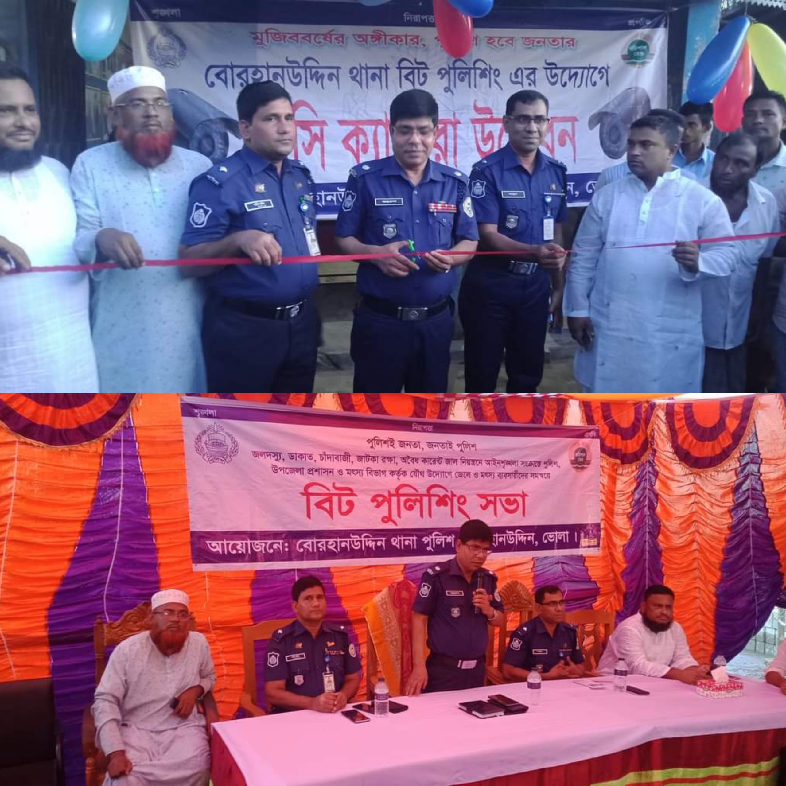 ভোলার হাকিমউদ্দিন লঞ্চঘাটে বিট পুলিশিং সভা ও সিসি ক্যামেরার উদ্বোধন