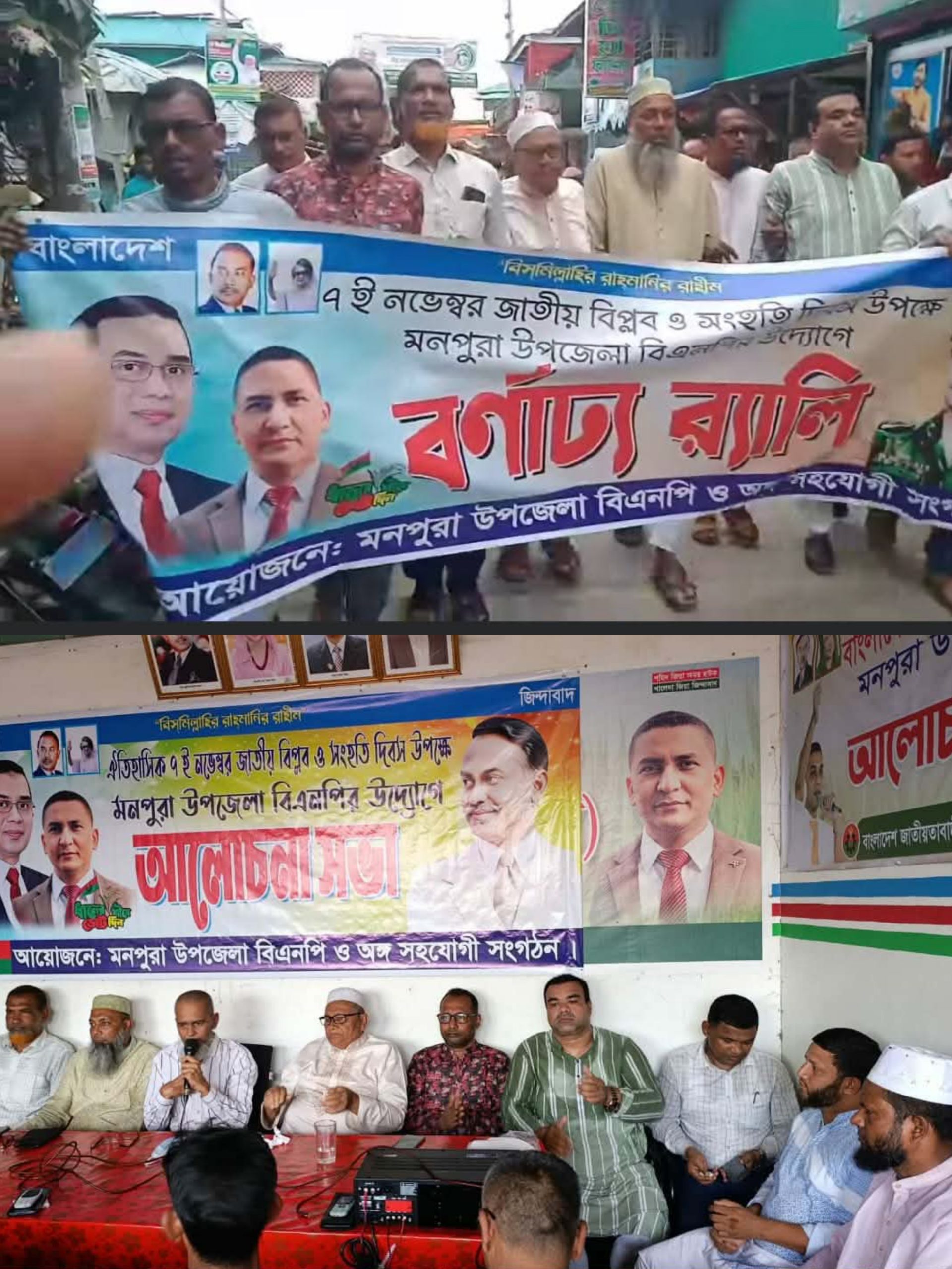 ভোলার মনপুরা উপজেলায় জাতীয় বিপ্লব ও সংহতি দিবস যথাযোগ্য মর্যাদায় পালিত হয়েছে। শুক্রবার সকাল সাড়ে ১০টার দিকে হাজিরহাট উপজেলা বিএনপির কার্যালয়ে জাতীয় ও দলীয় পতাকা উত্তোলনের মাধ্যমে কর্মসূচির সূচনা হয়। এরপর একটি র্যালি বের হয়ে হাজিরহাটের প্রধান প্রধান সড়ক প্রদক্ষিণ করে।