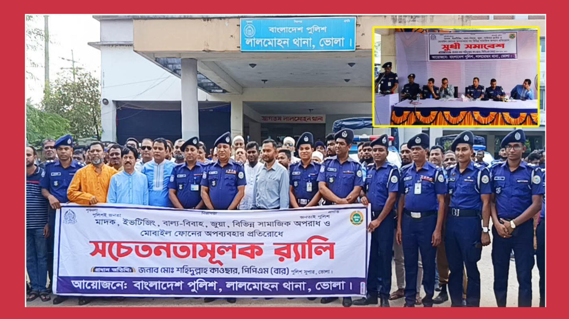 মা দ ক ও সাইবার অপরাধমুক্ত সমাজ গড়তে লালমোহনে পুলিশ-জনতা সুধী সমাবেশ