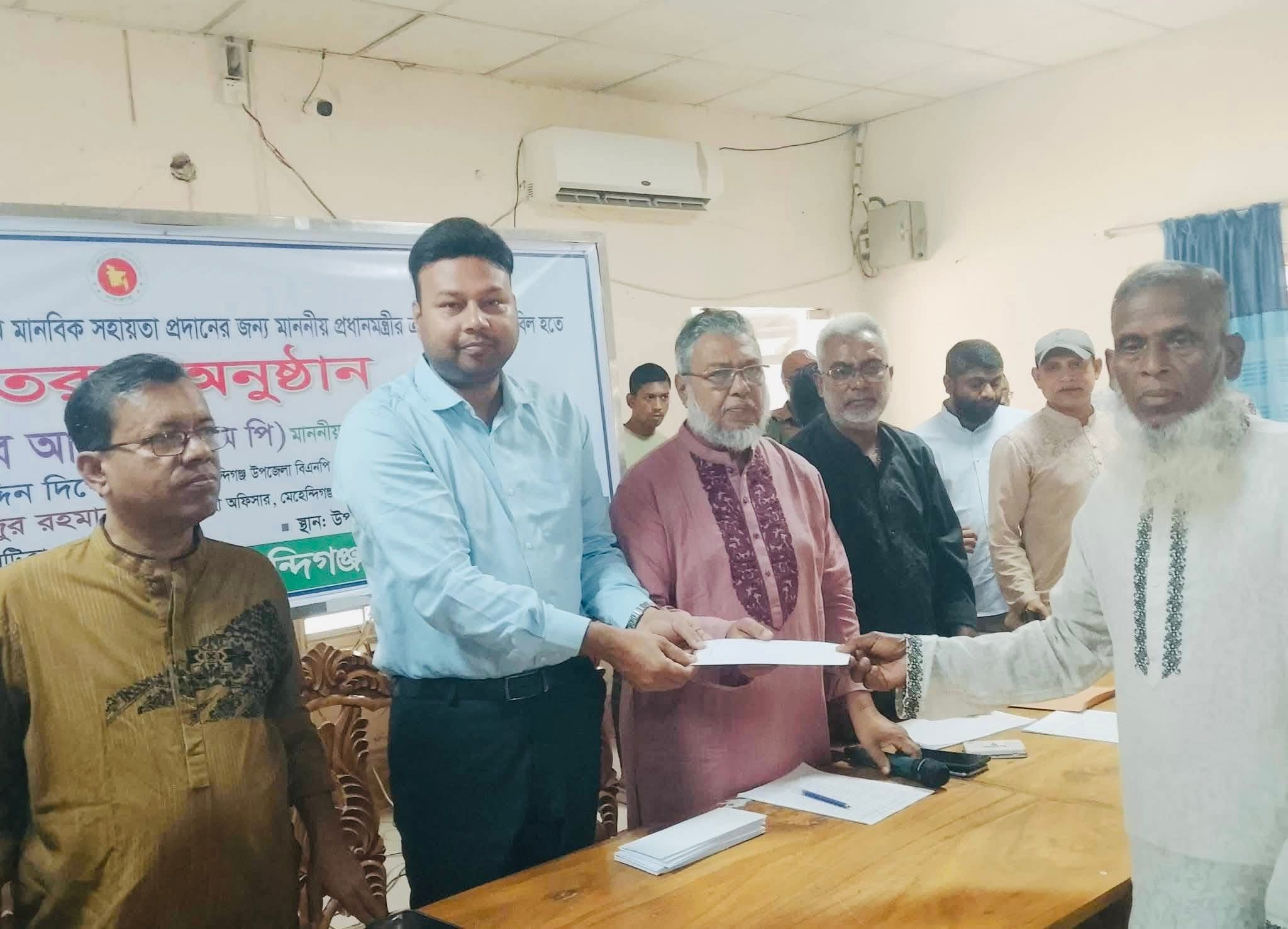 মেহেন্দিগঞ্জে দরিদ্র মানুষের মাঝে প্রধানমন্ত্রীর পক্ষে নগদ টাকা বিতরণ।