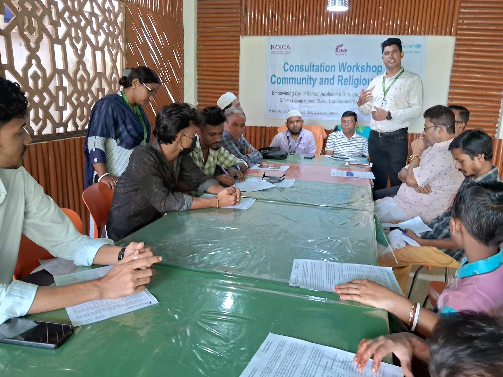 স্কুলের বাইরের কিশোরী এবং যুবতী নারীদের বাজারের সাথে ক্ষমতায়ন করা। চালিত পেশাগত দক্ষতা, স্থানান্তরযোগ্য দক্ষতা এবং চাকরির নিশ্চয়তা প্রদান করার বিষয়ে বাংলাদেশ ইউনিসেফের সহযোগিতায় এবং ইকো-সোশ্যাল ডেভলপমেন্ট অর্গানাইজেশন ( ইএসডিও) এর আয়োজনে বুধবার (৬ ই নভেম্বর) সকালে ভোলা শহরের যুগিরঘোলস্থ মাটির হান্ডি রেস্টুরেন্টে প্রকল্প সাবজেক্ট ম্যাটার এক্সপার্ট (SME) মো. সাজু ইসলামের সভাপতিত্বে সম্প্রদায় এবং ধর্মীয় নেতাদের সাথে পরামর্শ কর্মশালা কর্মশালা অনুষ্ঠিত হয়।