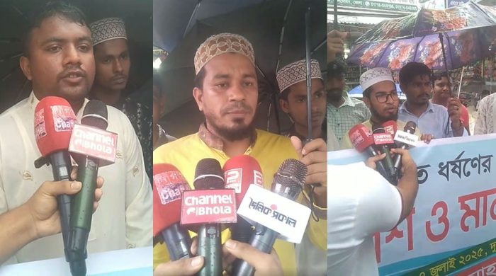 বিশেষ প্রতিবেদক, ভোলা প্রকাশ।। ভোলার লালমোহন-তজুমদ্দিনসহ জেলাজুড়ে ক্রমাগত ধর্ষণের ঘটনায় প্রতিবাদ সমাবেশ ও মানববন্ধন অনুষ্ঠিত হয়েছে। সোমবার দুপুরে প্রচণ্ড বৃষ্টি উপেক্ষা করে লালমোহন চৌরাস্তায় ’জুলাই ছাত্রজনতা, লালমোহন-তজুমদ্দিন’ ব্যানারে সাধারণ মানুষ