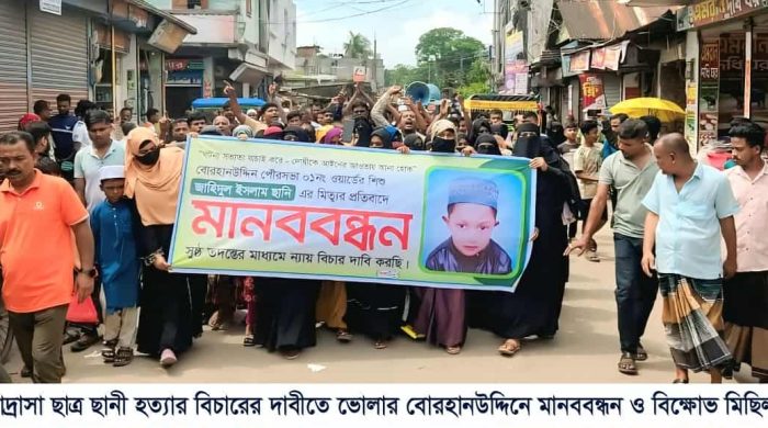 মোঃ সাইফুল ইসলাম আকাশ ভোলা প্রতিনিধি: ভোলার লালমোহন উপজেলার কালমা ইউনিয়নে মাদক ব্যবসায়ী শাহাবুদ্দিন ও তার সহযোগীদের গ্রেফতারের দাবিতে মানববন্ধন অনুষ্ঠিত হয়েছে। সোমবার (২৩ জুন) বিকেলে ও ২৪ জুন মঙ্গলবার