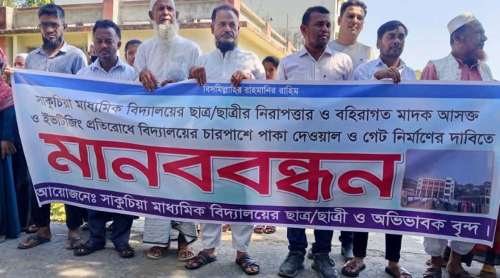 মোঃ শাকিল খান রাজু সিনিয়র স্টাফ রিপোর্টার।। ভোলার মনপুরা উপজেলার সাকুচিয়া মাধ্যমিক বিদ্যালয়ের চারদিকে পাকা বাউন্ডারি দেয়াল নির্মাণ ও বিদ্যালয়ের খেলার মাঠ ভরাটের দাবিতে মানববন্ধন অনুষ্ঠিত হয়েছে। রোববার (১৬ নভেম্বর)