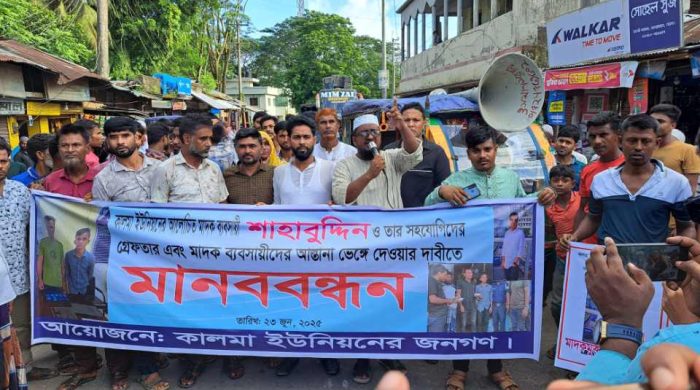মোঃ সাইফুল ইসলাম আকাশ ভোলা প্রতিনিধি: ভোলার লালমোহন উপজেলার কালমা ইউনিয়নে মাদক ব্যবসায়ী শাহাবুদ্দিন ও তার সহযোগীদের গ্রেফতারের দাবিতে মানববন্ধন অনুষ্ঠিত হয়েছে। সোমবার (২৩ জুন) বিকেলে ও ২৪ জুন মঙ্গলবার