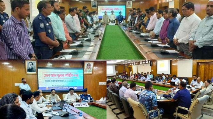 সাইফুল ইসলাম আকাশ নিজস্ব প্রতিবেদক,ভোলা: ভোলা জেলা মাসিক আইন শৃঙ্খলা কমিটির সভা জেলা প্রশাসকের কার্যালয়ের সম্মেলন কক্ষে অনুষ্ঠিত হয়েছে। ১২ নভেম্বর রবিবার সকালে ভোলা জেলা প্রশাসনের আয়োজনে ভোলা জেলা প্রশাসক